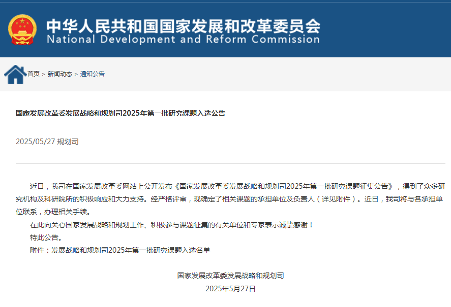 我院一項(xiàng)課題入選國(guó)家發(fā)展改革委發(fā)展戰(zhàn)略和規(guī)劃司2025年第一批研究課題