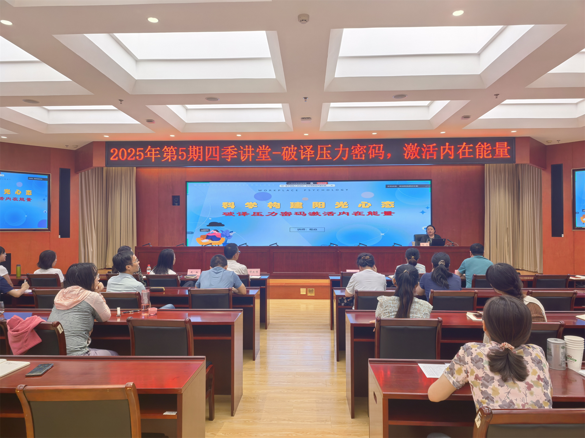 為幫助干部職工科學認識壓力、掌握調適方法、培育積極健康的陽光心態,提升工作效能與生活幸福感,我院工會于715日舉辦2025年第5期四季講堂,邀請資深心理咨詢師、培訓師,首都科學講堂公益大使荀焱老師,以“破譯壓力密碼,激活內在能量”為主題作專題輔導報告,各部門干部職工參加。