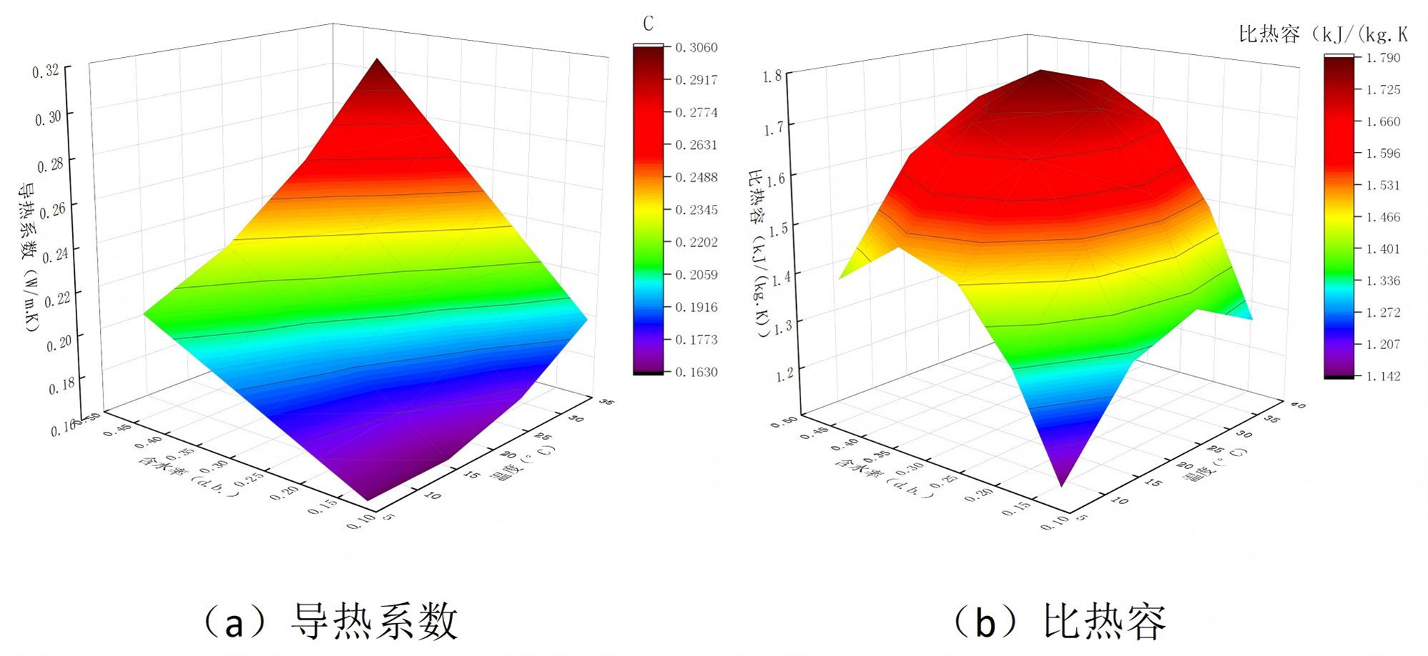 圖1 玉米物性參數隨溫度、含水率變化的云圖