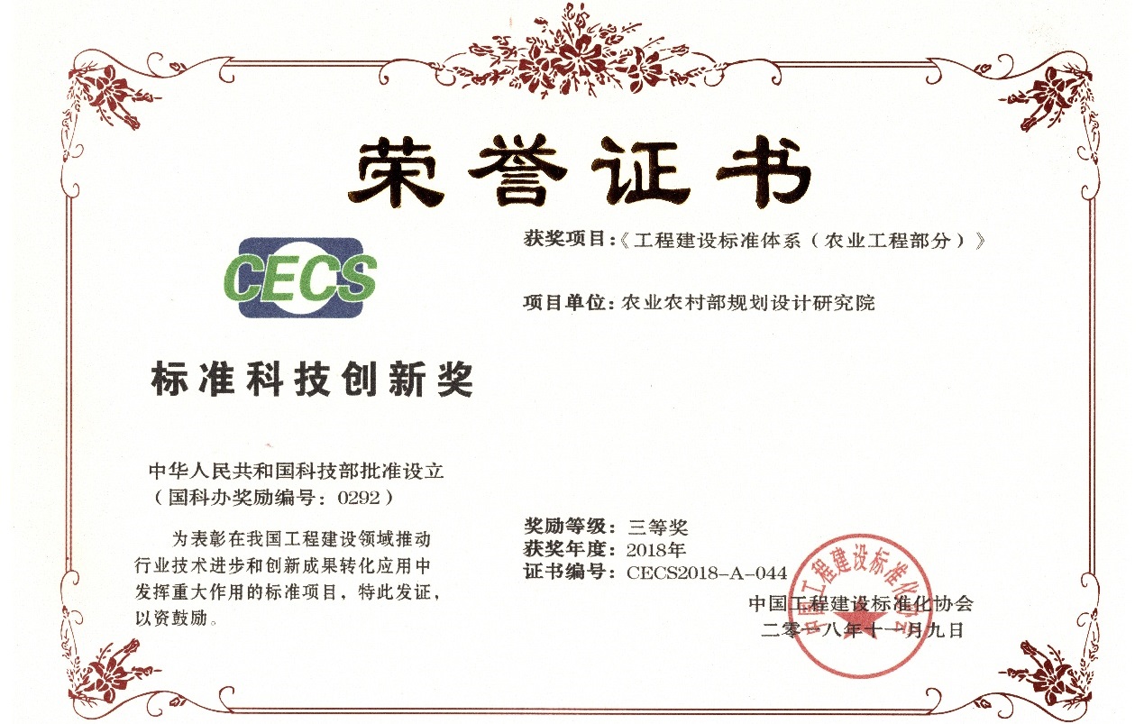 我院主編的國(guó)家標(biāo)準(zhǔn)《工程建設(shè)標(biāo)準(zhǔn)體系(農(nóng)業(yè)工程部分)》榮獲“標(biāo)準(zhǔn)科技創(chuàng)新獎(jiǎng)”三等獎(jiǎng)
